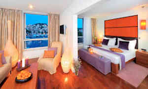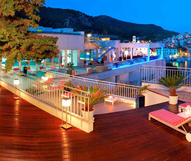 Snyggt och modernt designat hotell i stram stil, men med mjuka färger. Adriana Hvar Spa Hotel ligger precis vid hamnen i Hvar och en kort promenad bort finns centrum med ett stort utbud av butiker, restauranger och barer. Börja semesterdagen med frukost i hotellets restaurang, som ligger i markplan och har utsikt över strandpromenaden och hamnen. Efter en dag på stan eller i solen är det skönt att koppla av i hotellets stora, fina spaavdelning. Här kan du njuta av behandlingar som massage och bada ångbastu.