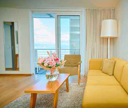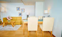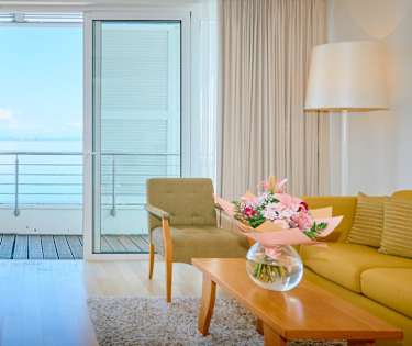 Junior-svit har även sällskapsutrymme med soffa, kaffe/te-bryggare samt badrock och tofflor.