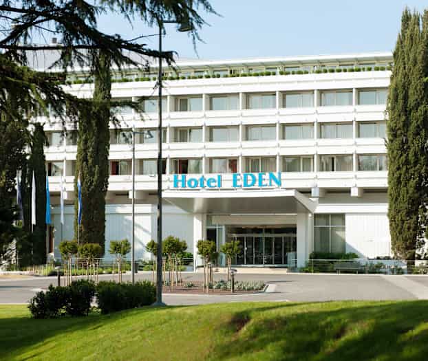 Eden Hotel by Maistra Collection ligger inbäddat i en stor, grönskande och parkliknande trädgård i utkanten av Rovinj, med utsikt över både havet och den inbjudande stranden. Här bor du i en lugn miljö med gott om utrymme för avkoppling, men ändå med gångavstånd till centrum och folklivet.