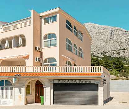 som löper längs med vattnet. Här kan du välja om du vill bo i hotellrum eller i bekväma lägenheter med pentry så du kan laga din egen frukost eller middag. Baska Vodas frukt- och grönsaksmarknad