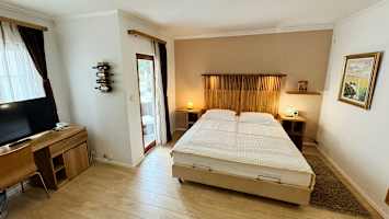 Hotellet tar en serviceavgift på 6 euro per person och natt, som betalas vid utcheckning.