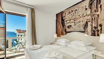 Direkt nedanför hotellet ligger Gradacs strand, där du som gäst har tillgång till en egen del med solstolar och en flytbrygga ut i det kristallklara vattnet. Den välskötta strandpromenaden bjuder in till promenader, cykelturer och svalkande dopp – cyklar och SUP-brädor finns att hyra på hotellet. Under juli och augusti erbjuds även VIP-zoner på stranden som kan bokas i förväg för extra bekvämlighet.