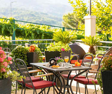 Frukosten serveras på hotellets terrass kl. 08.00-10.00.