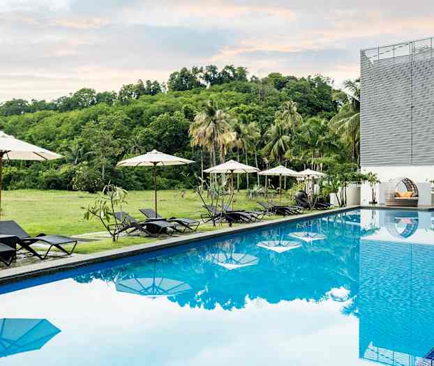 The Bayou Hotel Langkawi är ett enkelt hotell med modern inredning i lugna omgivningar. På hotellets terrass kan du koppla av vid poolen och njuta av den vackra utsikten mot Langkawis gröna kullar. Runt poolområdet finns några solstolar och parasoll där du kan koppla av med en bra bok. När solen går ner kan du unna dig en massage eller avnjuta en god middag i hotellets restaurang. Kvällen avslutas bäst i hotellets fina loungebar. De omtyckta stränderna Pantai Tengah och Pantai Cenang ligger en längre promenad bort från hotellet och längs vägen finner du några barer och restauranger.