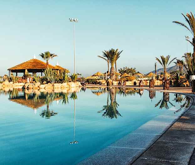 På hotellet finns ett stort och pampigt poolområde med flera pooler, barnpool och poolbar. Här kan du kan koppla av i en solstol, ta sköna bad i poolen och njuta av svalkande drycker. Önskar du besöka stranden har hotellet en privat del som bara är till för hotellets gäster. I restaurangerna kan du välja bland generösa bufféer och vällagade rätter och här hittar du bland annat rätter från det asiatiska och marockanska köket.