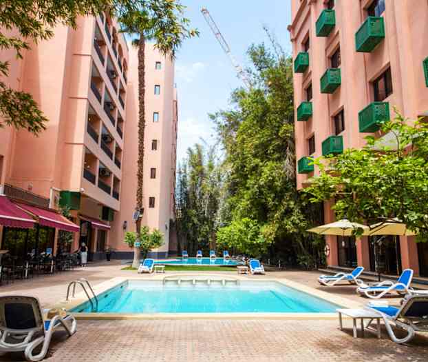 Meriem är ett trevligt och fräscht hotell i den modernare delen av Marrakech. På hotellet finns ett fint poolområde med två pooler. Här finns också gym och möjlighet till massage och hamam om du vill unna dig något extra. En kort promenad från Meriem ligger ett köpcentrum med flera internationella butikskedjor, och i närområdet finns boutiquer med allt från designkläder till marockanskt hantverk.