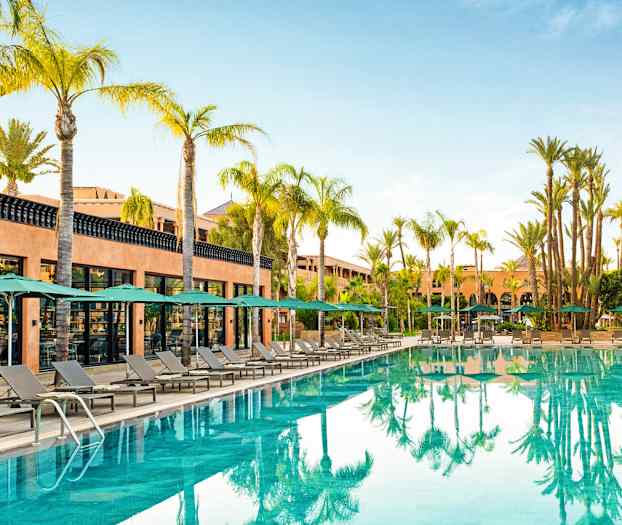 Riu Tikida Garden är ett vackert All-Inclusive hotell med en grönskande trädgård i stadsdelen Palmeraie i pulserande Marrakech. Vid det rymliga poolområdet kan du njuta av lugnet i en solstol under ett parasoll eller ta svalkande och uppfriskande bad, perfekt i det varma marockanska klimatet.