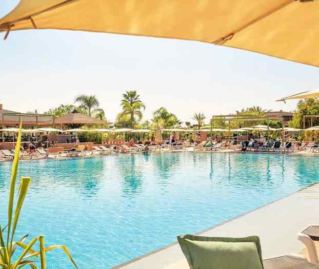Slå dig ner vid det stora poolområdet i en solstol och njut av lugnet och solens strålar. Här finns även en barnpool som välkomnar hotellets yngsta resenärer till lek och bus. Hotellets restaurangutbud är rikt på både kvalitet och variation. På morgonen startar du dagen med en av de läckra frukostbufféerna med live cooking stationer. Till lunch och middag serveras smakrika rätter från det marockanska köket så att du kan utforska Marockos matkultur, eller så kan du botanisera bland italienska rätter i restaurangen vid poolområdet. Riu Tikida Palmeraie - All Inclusive har även flera barer där du kan njuta av svalkande drycker.