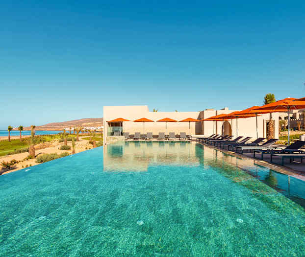 Hotel Riu Palace Tikida Taghazout är ett vackert All Inclusive-hotell direkt på stranden i Taghazout, norr om Agadir. Här väntar lugna omgivningar som omges av vackra palmer och havet som närmsta granne. Det enda som skiljer hotellet från stranden är en strandpromenad som bjuder in till härliga promenader under solens strålar.