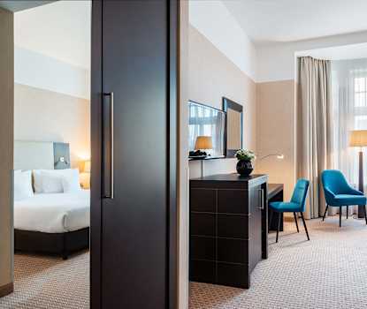 Ligger i Warszawas centrum 800 meter från palatset för kultur och vetenskap.
