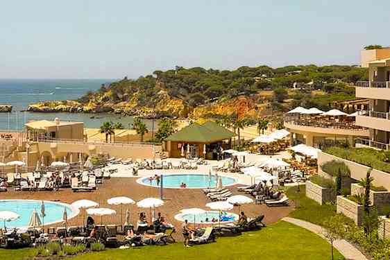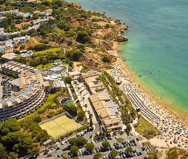 Grande Real Santa Eulália är ett stort och barnvänligt hotell med fint läge precis vid stranden i Santa Eulália, strax utanför Albufeira. Här kan både vuxna och barn se fram emot en avkopplande semester med många roliga aktiviteter. Hotellet har flera inbjudande poolområden och en internationell barnklubb som arrangerar diverse lekar för barnen, medan du passar på att spela tennis eller träna i gymmet. Kvällstid bjuds både äldre och yngre gäster på underhållning i form av levande musik och Mini Disco.