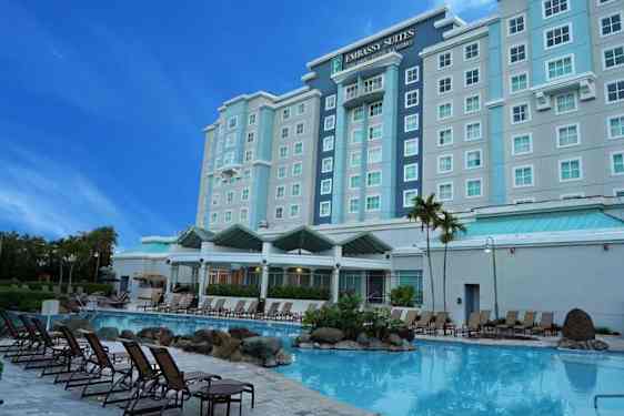 Embassy Suites by Hilton San Juan Hotel & Casino i Carolina, Puerto Rico, välkomnar dig. Beläget bara en halv mile från Luis Muñoz Marín International Airport (SJU) och två kvarter från Isla Verde Beach, erbjuder vårt hotell bekväma sviter med två rum och tillgång till Oasis Casino. Njut av en frukost som tillagas på beställning och två timmar med kostnadsfria drinkar varje dag. Våra nyligen renoverade sviter har ett rymligt vardagsrum med skrivbord, mikrovågsugn, minikylskåp och wet bar, samt ett separat sovrum med bekväma Suite Dreams-sängar. En daglig resortavgift täcker Wi-Fi, strandservice, poolfaciliteter, cykeluthyrning, flaskvatten, rabatter på mat och kasino samt premium Puerto Rican-kaffe. Vårt dedikerade team för försäljning och catering finns tillgängligt för att hjälpa till med evenemangsplanering. För mer information eller bokning, ring oss på 787-791-0505.