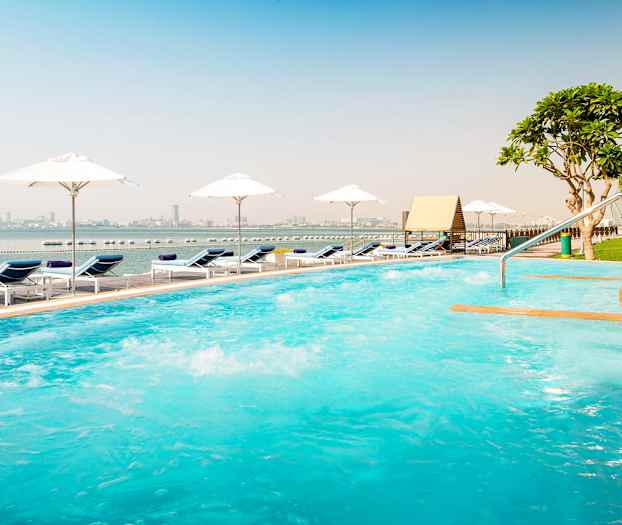 Sheraton Grand Doha Resort & Convention Hotel är ett ikoniskt hotell som ligger direkt på stranden mellan den gamla och nya delen av Doha. Hotellet som renoverades 2015 har behållit sin ursprungliga, charmiga arkitektur från 1980-talet, samtidigt som hotellet erbjuder alla moderna semesterfaciliteter som du kan önska för en bra semester. På hotellet finns ett fint poolområde med utsikt över havet med barnpool, poolbar och en infinity bubbelpool. Hotellet har också en egen strand med solstolar och parasoll. På Sheraton Grand Doha Resort & Convention Hotel hittar du ett stort utbud av restauranger och barer med olika menyer från världens alla hörn. Vill du aktivera dig under semestern har Sheraton Grand Doha Resort & Convention Hotel ett brett utbud av aktiviteter. Här kan du bland annat spela tennis, padel, squash, delta i träningsklasser eller träna på egen hand i hotellets gym. Vill du ta det lugnt finns ett spa med massage, bastu och ångbastu. Vill du utforska Dohas sevärdheter och attraktioner är Sheraton Grand Doha Resort & Convention Hotel en bra utgångspunkt och härifrån är det bara en kort taxiresa till Museum of Islamic Art, Doha Golf Club och Souq Waqif.