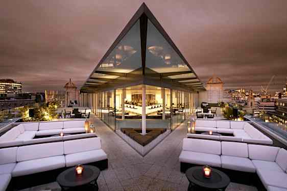 Radio Rooftop Bar på ME London i Soho är en av stadens bästa takbarer med en fantastisk utsikt över London. Här kan du äta medelhavsinspirerade rätter med säsongsbetonade, lokala råvaror och vill du börja dagen med den bästa utsikten serveras även frukost här. Brunchserveringen på helgerna ackompanjeras ofta av dj:s och cool musik. Om du bor på hotellet får du första entrétiden till takbaren.