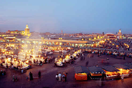 Ta med dig den du håller kär till den äventyrliga marknadsplatsen i Marrakech. Här finns hundratals små matstånd där kött, grönsaker och bröd tillagas över öppen eld. Slå er ner på en av de enkla bänkarna, peka på det ni tycker ser gott ut och njut av en minnesvärd måltid tillsammans under Marockos stjärnhimmel.