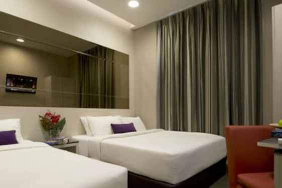 I hjärtat av staden, drygt 400 meter från National Museum, erbjuder V Hotel Bencoolen en utomhuspool, elegant inredda rum och en 24-timmarsreception. Detta mysiga boutiquehotell ligger bara 290 meter från Singapore Arts Museum och Bras Basah MRT Station. Den livliga Orchard Road ligger bara 10 minuters promenad bort, och Changi International Airport ligger 19, 3 km från hotellet. De luftkonditionerade rummen på V Hotel Bencoolen är inredda i djupa lila nyanser och har en platt-TV, en garderob i full längd och en minibar. Badrummen har privata badrum och hårtork.