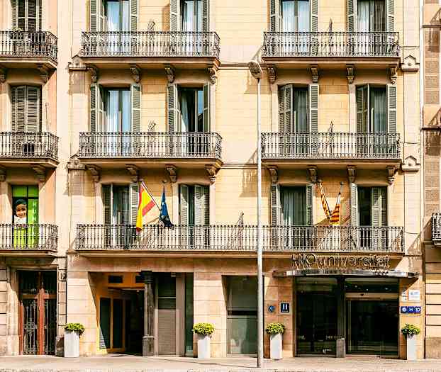 Snyggt hotell med bra läge helt nära Plaza Catalunya. Härifrån har du heller inte långt till Barrio Gotico, Barcelonas historiska kvarter, och Paseo de Gracia. The H10 Universitat är inrymt i en byggnad från slutet av 1800-talet, som renoverats och byggts om till ett modernt hotell med alla bekvämligheter. Populär takterrass på nionde våningen med bar och en fantastisk ut över stan.