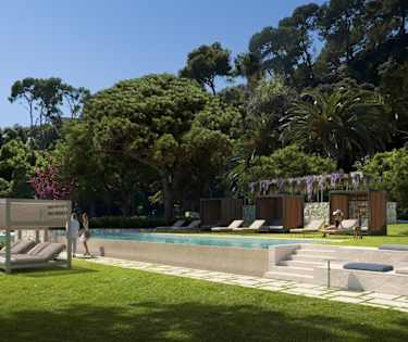 Hotellet ligger inbäddat i ett fantastiskt 7 ha stort skogsområde, perfekt beläget i utkanten av stranden Santa Cristina. Med hisnande havsutsikt är det
