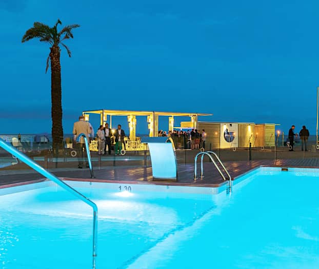 På ALEGRIA Mar Mediterrania kan du välja om du ska spendera semesterdagen i en solstol runt hotellet trevliga poolområde eller på stranden som ligger precis nedanför hotellet. Där finns hotellets egen strandklubb med bar och solstolar. På ALEGRIA Mar Mediterrania finns även en modern bufférestaurang som är öppen för frukost, lunch samt middag och för en extra bekväm semester kan du boka på någon av våra måltidspaket.