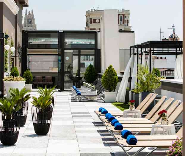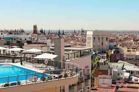 Trevligt hotell mitt i hjärtat av Madrid. Här bor du nära både shopping och sevärdheter. Under sommartid kan du njuta av den strålande utsikten från hotellets takterrass på tionde våningen. Här kan du ta ett svalkande dopp i poolen eller en drink i baren.