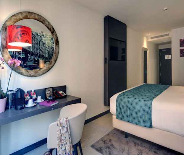Situated in the heart of Madrid, the recently open 4 stars hotel Indigo Madrid Gran Via, is just a few steps from Gran Via street, the most modern, vibrant and cosmopolitan avenue in the capital. The modern and contemporary 4 stars hotel Indigo Madrid Gran via, is specifically designed recalling all most important and beautiful part of Gran Via street. The street itself is one of the main artery of the city and is dated back to 1910, a symbol for the citizen and for which the hotel Indigo Madrid Gran Via has themed the property. All rooms are warm, cozy, and designed to connect guest with the sparkling Madrid. Client rooms feature a well designed work-space, Free Wi-Fi, Iphone docking stations and 42" TV. Bathrooms have a refreshing, spacious walk-in rain shower and Luxury toiletries. Additionally the gastro pub and restaurant offer excellent menus created by famous Chef Andrea Tumbarello, where Italian specialty and typical Madrid Tapas are served daily.
