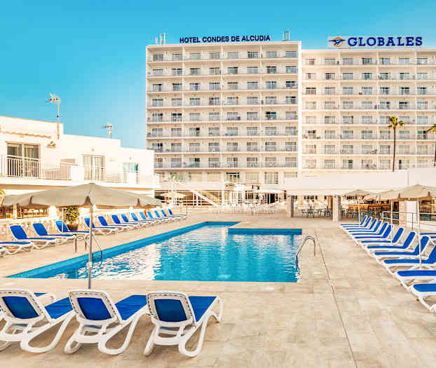 Globales Condes Alcudia är ett stort, enkelt All Inclusive-hotell med perfekt läge nära centrum och strand i Alcudia. Här får du en härlig och avkopplande semester med sol, bad och närheten till strandpromenaden och fina omgivningar. På hotellet finns det ett trevligt poolområde med solstolar och parasoll där du kan slå dig ner och njuta av solens strålar samtidigt som du njuter av något gott att dricka från baren. Här finns även en restaurang som serveras dagens alla måltider. Globales Condes Alcudia annordnar underhållning alla dagar i veckan för hela familjen där du bland annat bjuds på liveuppträdanden och dans.