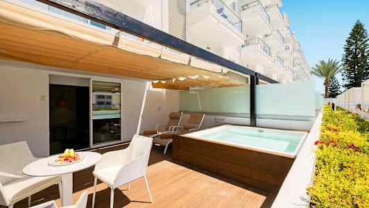 Hotellet har dessutom ett fräscht gym, en minimarket och en sportbar där du kan beställa dryck, hamburgare och lättare rätter. Vill du unna dig något extra finns det exklusiva området Selection Club med solterrass, grund pool, bubbelpool och balisängar som ingår i vissa lägenhetstyper.