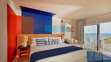 Alua Calvià Mallorca erbjuder ljusa rum med fina accentfärger och vill du ha en extra bra semester bokar du med fördel ett rum som ingår i My Favorite Club-koncept.