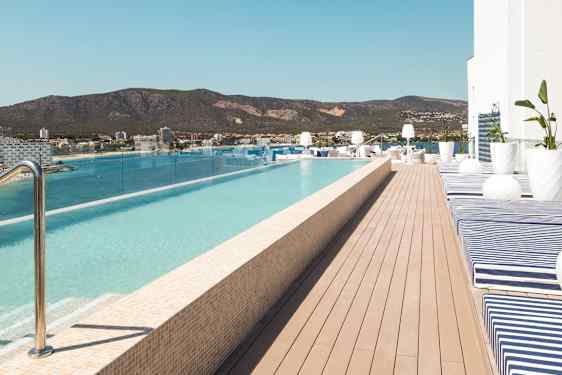 Det moderna FERGUS Style Tobago ligger bara några meter från den vackra sandstranden och nära Palma Novas centrum. Från sitt utmärkta läge på udden Torrenova, har hotellet en fantastisk havsutsikt från takterrassen. Här uppe hittar du en infinitypool som är perfekt för att svalka dig under dagen. Här finns även en av hotellets tre barer, Sky-baren som är den idealiska platsen för att smutta på en cocktail medan du njuter av den hisnande solnedgången.