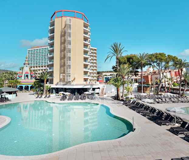 Sol Katmandu Park & Resort är ett barnvänligt hotell med bra läge, här bor du bara en kort promenad från både stranden och centrum i Palma Nova. Hotellet har en fin liten trädgård och ett poolområde med tre pooler, solstolar och en poolbar.