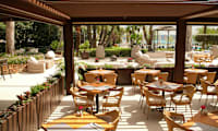 - Solstolar vid poolen och på stranden nedanför hotellet