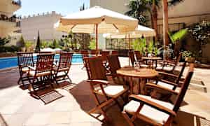Stilfullt och trivsamt hotell med bra läge i Palma stad, nära det kända shoppingstråket Avenida Jaime III och sevärdheter som den mäktiga katedralen La Seu. På Saratoga finns två separata poolområden varav ett ligger på takterrassen. I hotellets spaavdelning kan du njuta av avkopplande behandlingar. Högst upp i hotellbyggnaden finns också en restaurang/jazzklubb som har levande musik torsdag, fredag och lördag.