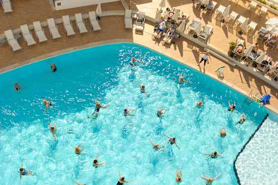 Poolområdet på Sunprime Waterfront är något utöver det vanliga. Här kan du njuta av en magnifik havsutsikt, slå dig ned i en skön solstol eller ta ett svalkande dopp i poolen. Föredrar du salta vågor finns det en liten strand och badvik precis nedanför hotellet, vill du ha en större strand är det bara att promenera ett hundratal meter, förbi den lilla småbåtshamnen.