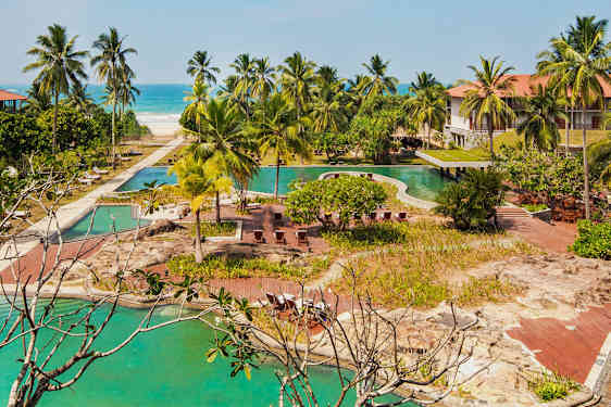 Cinnamon Bentota Beach är ett tropiskt paradis på Sri Lankas sydkust, designat på 1960-talet av en av Asiens inflytelserika arkitekter, Geoffrey Manning Bawa. Hotellet ligger som en grön oas precis vid Indiska oceanens strandkant och flodens mynning i Bentota. Här bor du i ett fint rum eller i en stor svit, med balkong och utsikt mot trädgården, poolområdet, floden eller havet. Hotellet har ett inbjudande poolområde med solstolar och gillar du salta bad är Indiska oceanen som en uppvärmd pool året om med sina 27 grader.