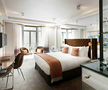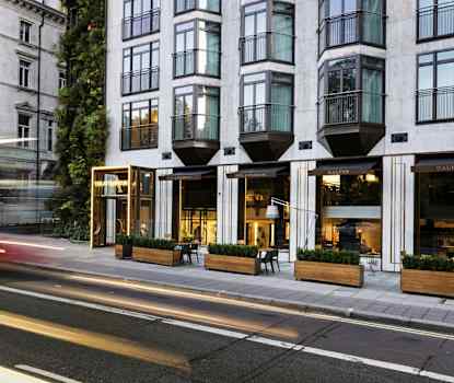 Deluxerummen har stora fönster, från golv till tak. Härifrån har du utsikt över Mayfair. Parkviewrummen har samma typ av fönster, med utsikt över Green Park.