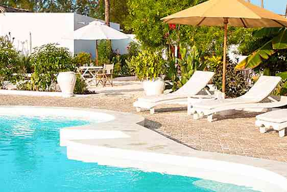 Dhow Inn är ett litet, mysigt boutique-hotell med avslappnad atmosfär och perfekt läge nära stranden i den lilla fiskebyn Paje på den sydöstra kusten av Zanzibar. På hotellet finns fyra poolområden med solstolar och parasoll omgiven av blommor och palmer och här har du alltid nära till en pool.