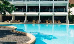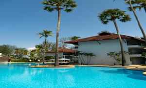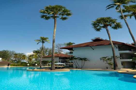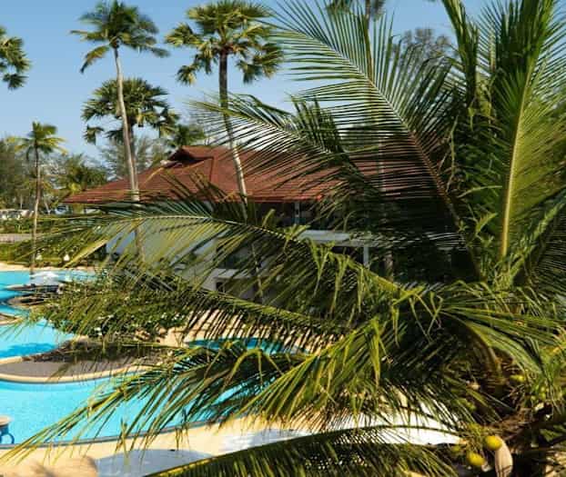 Det nyligen renoverade Amora Beach Resort är omgiven av en vacker natur med svajande kokospalmer som skapar en lugn atmosfär.