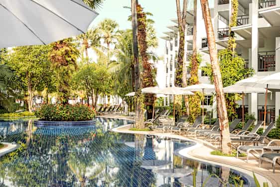 Under palmerna på Sunwing Bangtao Beach, och med det turkosblå havet som fond, kan hela familjen verkligen njuta tillsammans. Det härliga poolområdet på Sunwing Bangtao Beach omfattar sex pooler. Populärast är den stora familjepoolen på hela 1340 kvadratmeter, som erbjuder både vikar, bukter och en liten ö.