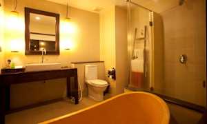 Premier-svit har även mikrougn, minibar (mot avgift) och badkar.