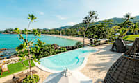 Hotellet har ett fint poolområde med vacker utsikt över havet. Hotellet erbjuder gratis transport med golfbil till stranden.