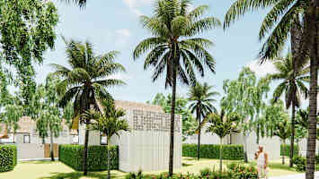 - Badrummen är delvis öppna mot himlen och har en separat utomhusdusch
