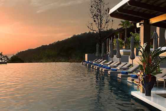 Avista Hideaway Phuket Patong - MGallery ligger i en lugn och avskild del av Patong, omgiven av grönska och berg. Hotellet är högt beläget, vilket ger en fantastisk utsikt över bergen, havet och Patong Beach. Från de stora terrasserna kan du njuta av en kopp kaffe på morgonen eller en drink på kvällen. På hotellet finns det tre restauranger och två barer. Här serveras allt från läcker thailändsk och internationell mat till grillat kött, fisk och skaldjur. I barerna kan du njuta av en drink, en cocktail eller en liveshow. Avista Hideaway Phuket Patong - MGallery har tre poolområden, varav ett är uppvärmt. De två poolområdena med infinitypool har en fantastisk utsikt över bergen och havet. Poolområdena är avskilda och perfekta för en avkopplande stund.