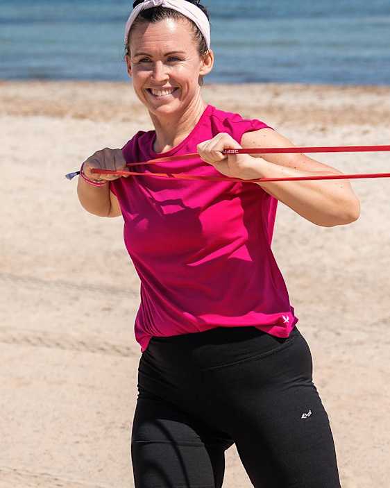Jane Nilsson från Småland är mästare på roliga träningsformer som du garanterat inte testat på förut, med sitt varma leende och fina personlighet får hon alla att våga prova nytt. Hon är erfaren PT med stor kunskap om kroppen, löpning och all form av träning. Jane lär dig träna funktionellt både på land och i havet. Lär dig allt om hur du blir stark och hållbar på djupet.