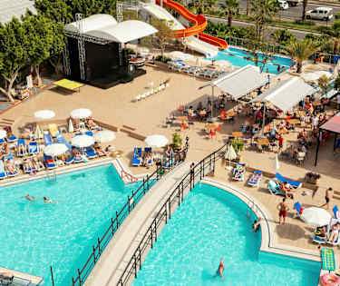 Dubbelrum med terrass mot poolområdet