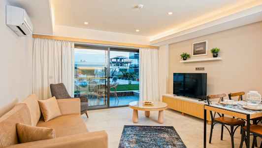 På A Suite Side kan du boka lägenhet för upp till fem personer, och vill du göra semestern lite bekvämare kan du boka till frukost, som serveras vid poolen.