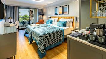 I hotellets bufférestaurang Palmiye dukas generösa och varierade bufféer upp med varma och kalla rätter till frukost, lunch och middag. Oavsett om du är sugen på något enkelt, något nyttigt, något mer matigt, kött, fisk, skaldjur eller bara lite läckra bakverk finns alltid något här för dig oavsett måltid. Barnen finner ofta sina favoriter i barnbuffén även om dessertbuffén också är en favorit bland de små men även de stora gästerna. En annan favorit hos många gäster finner du i strandbaren Begonya. Här kan du beställa nygräddad Gözleme, ett traditionellt turkiskt tunnbröd, med goda fyllningar som steks på en het platta - perfekt som ett enkelt snacks eller lunch på stranden.