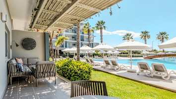 Barnen kan bada, plaska och leka i de olika barnpoolerna och i vattenlandet som erbjuder fyra spännande vattenrutschbanor. Lockar stranden och salta vågor har hotellet en privat del av stranden med egen Beach Club, solstolar, parasoll och en strandbar endast för hotellets gäster.
