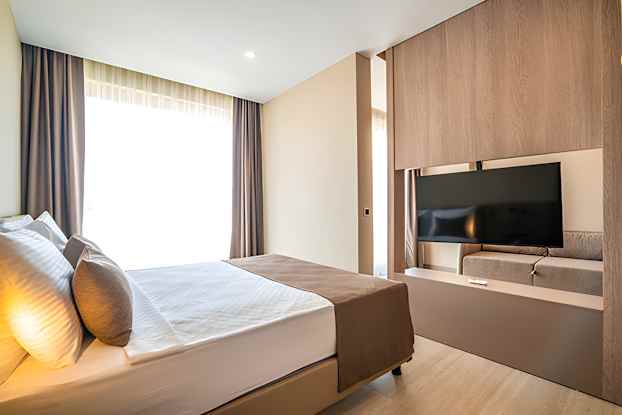 Rummen och lägenheterna är smakfullt inredda i jordnära toner med stilren design. Väljer du en av hotellets rymliga lägenheter får du dessutom möjlighet att laga enklare måltider själv.
