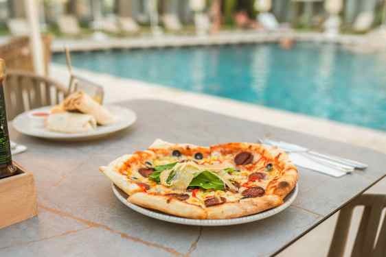 Poolområdet har en modern känsla och är en naturlig mötesplats under dagen. Här kan du ta svalkande dopp, sjunka ner i en bekväm solstol och beställa något gott från poolbaren. Restaurangen serverar frukost, lunch och middag – med rätter som hämtar inspiration från både internationella kök och lokala smaker.