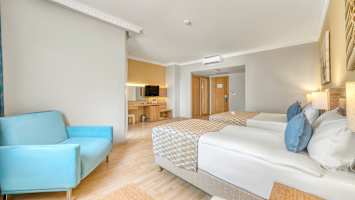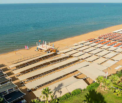 Vill du besöka stranden har hotell fri transport mellan kl. 09.00-18.00 till sin egen del av stranden där du även finner strandbaren och snackbaren som ingår i All Inclusive.